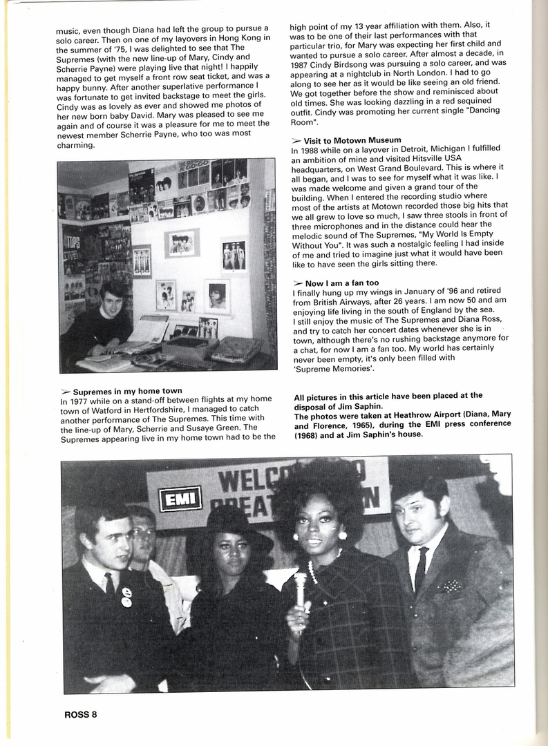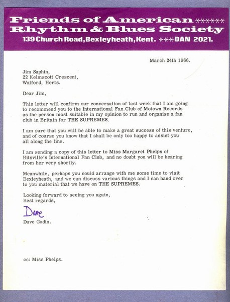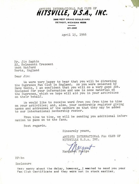 The Supremes fan club of Great Britain came into being with the dissolution early in 1966 of Dave Godin's 'Tamla Motown Appreciation Society', the superlative fan organisation which up until that time had catered to British fans of all Tamla Motown acts. Having been a member myself, the club gave members an opportunity to apply for the position of running a fan club as Secretary for the respective Motown acts. Of course, I applied for The Supremes, I got it and the rest is history!