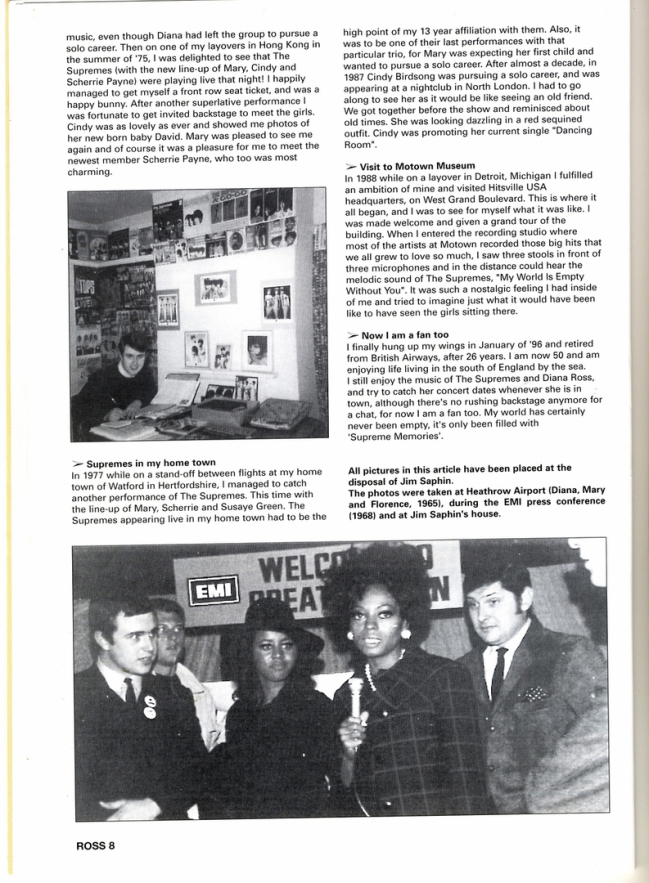 ‘Motown Jim Saphin,’ as he is known, whose e-mail address contains ‘DiMarFlo’ (as in Diana, Mary, and Florence [original members]) ran the fan club from 1966 to 1970, and over the years has collected more memorabilia (probably) only second to Detroit’s Motown Museum itself.